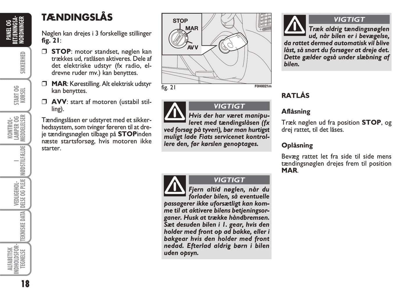 2010-2011 Fiat Idea Bedienungsanleitung | Dansk