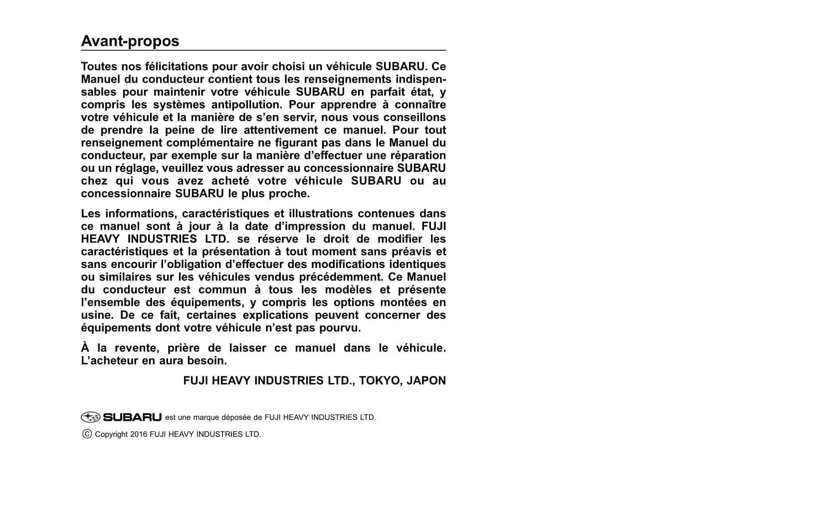 2017 Subaru Impreza Owner's Manual | French
