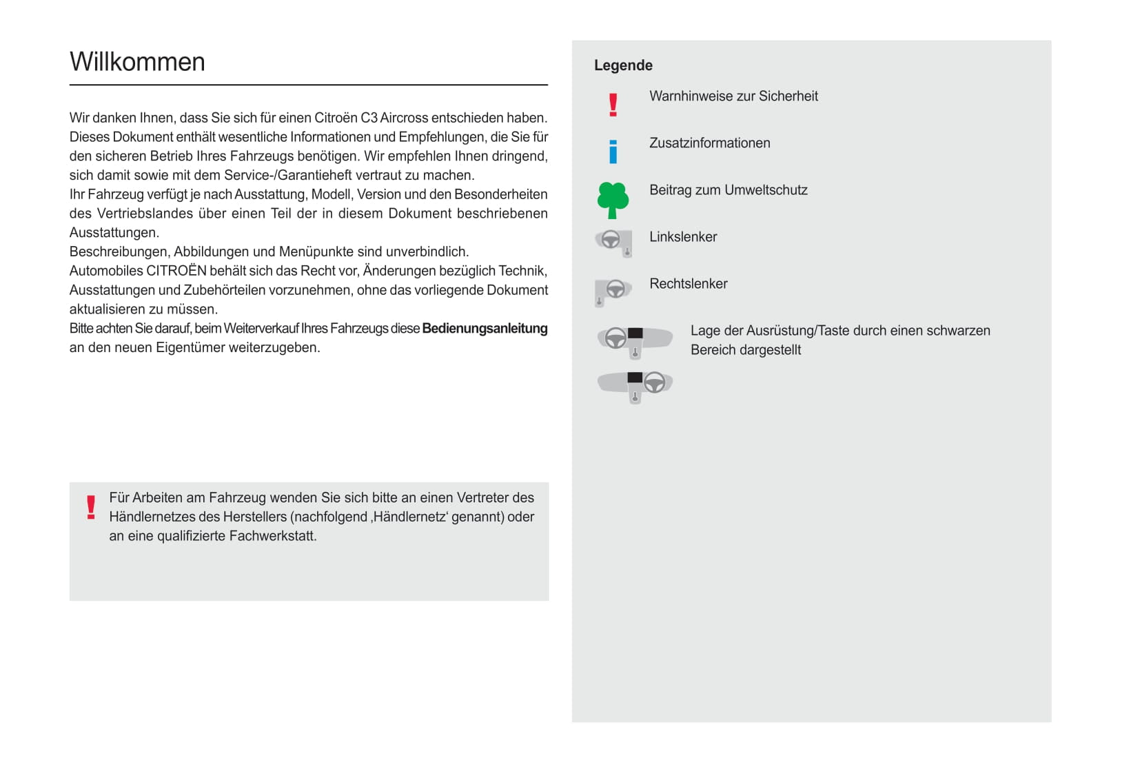 Ce manuel de voiture de langue allemande de 236 pages, imprimé à la demande, fournit des instructions complètes pour votre véhicule Aircross Citroën C3.